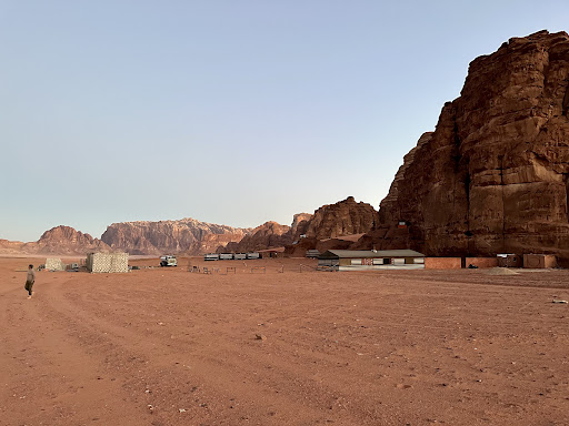 This is a truly magical place. We stayed here for 5 whole(-some) days, and it was not nearly enough. The ride from the village to the camp was already breathtaking, but the camp itself is on an amazing spot. The view is absolutely gorgeous. Wadi rum is even more incredible than my immense high expectations could imagine, but the people here were even more incredible. All involved beduins were super nice and friendly and after little time felt like old friends to us. The "head" was better organised and clever than all the corporate bosses I ever had. Our tour guides found the perfect middle way between a lot of silent, enjoyfull moments and interesting, funny chat. And the food... Lunch and dinner were just amazing. We did a 4h jeep tour on the first day, 2 full day tours, one beautiful restday, and a day climbing on the perfect sandstone. We miss our time here very much and want to come back again as soon as possible. If you go to Jordan, do yourself an immense favour and come to magic bedouin star!!! And book the honeymoon suite... It's too romanic and beautiful...