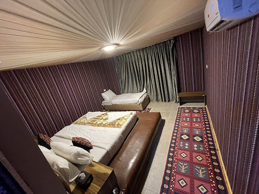 Read moreA very nice camp with lots of tents, with pros and cons: a very good location with lot of nice sand, not very easy to find in this desert. Above the camp there is the name with leds, where you can have a very nice view of the camp and desert the rooms are realy nice, not exactly tents (concrete walls), with one big bed, AC, and a good bathroom with shower invluded. În our double room there even was another single bed, so room for three. We found the rooms very hot and confortable considering that in the evening was approx 15 degrees outside. the view from the rooms is breathtaking, there is a back glass wall with doo that exist on a terrace towards the red desert the restaurant was ok, with the well known ceremony of the lamb in the sand. The only problem was that some sand arrived together with the meat, they have to be more careful for the future. Here we had some wifi but very limited with lots of interruptions. we had some music and dancing in the evening however, not the shows they have in Turkey, Dubai or Egypt. the person ell very friendly and nice but limited with English language from here we went with optionals: camel ride in the sunshine, flying balloons and desert safari