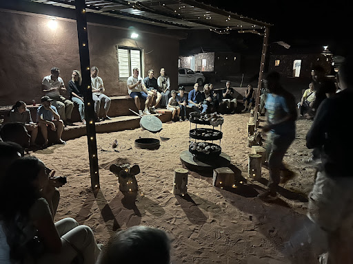 That evening, Ahmed took us to Magic Camp, which he said was owned by his uncle. We paid 57 JOD for two people, including dinner and breakfast. The camp was very comfortable, with working heaters, WiFi, and hot showers. The Yemen staff member was particularly helpful and hardworking. However, people were smoking in the dining tent, which was a downside.
