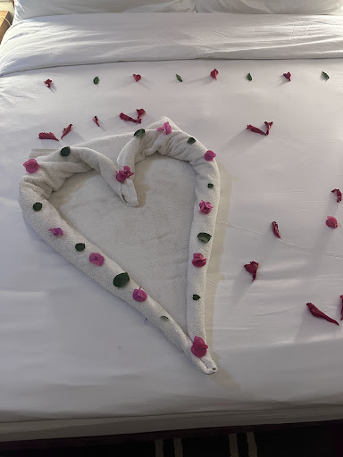 Our room was decorated so beautifully with fresh flowers and heart-shaped touches — so romantic and thoughtful. And the magic didn’t stop there. Every time we opened the door to our room, it felt like a fairytale. One time there was a delicious cake waiting for us, the next time it was a tray of local desserts, and then refreshed flowers — it felt like we were being looked after by love fairies. The effort and attention to detail were beyond anything we expected.