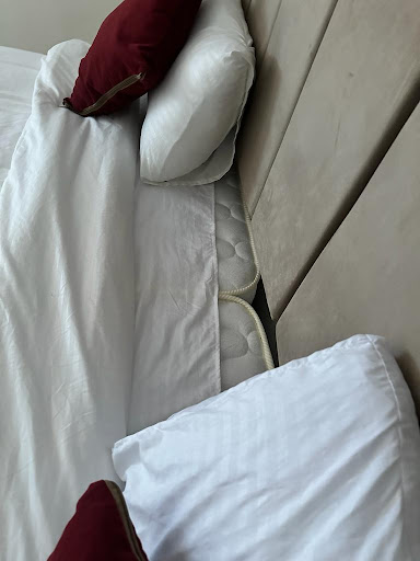 The bed (at least on 206) isn't comfortable. The bedsheet does not cover the entire mattress, so you end up sleeping on the mattress (see the picture). You get two towels for the stay (no bathmats) that aren't replaced unless you ask. There is no room service by default, so the room isn't cleaned during the stay. Our bathroom sink had no water pressure. Our shower never had hot water, but others said after 5-7 minutes, the water heated up, so maybe we didn't wait long enough.