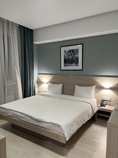 This is a modern, well kept hotel, situated in a great part of town and convenient for exploring Almaty.|There’s a lovely smell as soon as you enter the main entrance to the hotel. The staff in reception were very helpful and very friendly. |My room was on the ground floor and I was impressed with the facilities.|The room was immaculately clean. The bed was very large and comfortable. There is a wall mounted smart tv and a dressing table / eating/ writing area that you can sit and use. They also have a minibar.|The bathroom is really spectacular. It was large and the lighting excellent. It is very modern and has Bluetooth capability, so you can listen to your music while you’re using the room.|The hotel also provides a wonderful array of amenities and a great hairdryer.|They also provide dressing gowns/slippers and a safe and will do laundry for you.|I think they have thought of everything.|There is a restaurant attached to the hotel, which is open for breakfast/lunch and dinner.|I had room service from the restaurant one night and found it to be delicious and very good value.|I also dined in the restaurant each morning for breakfast. The restaurant is nicely decorated and the choice of food available really good. The food is a nod to where Almaty is located and is a mixture of Asian and European influenced foods. |The hotel also has a spa facility. The details for the spa treatments are at reception and available in both English and Russian. The prices were fairly reasonable but I was informed the treatments are Monday to Friday. I was staying over a weekend.|The location of the hotel means it is only a short walk away from restaurants, shops, cafes and the attractions of Almaty.|Reception are very helpful and will happily book you a taxi using the Yandex app. This is a great way of getting a taxi and really good value for money.|I would really recommend a stay...
