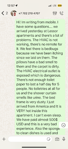 Read moreDo not book here. They will try and deny this review but the place smelled horrible, HVAC didn’t work, they didn’t want to help with any issues we had, they also have electric outlet issues that are a huge safety problem which i will be reporting. No toiletries provided for 5 guests. Do yourself a favor and book an air bnb that actually takes care of the property. VERY NASTY and RUDE management/owners. You can read the transcript below. They didn’t care and didn’t come out to fix anything. The apartment is in horrible shape and smell...