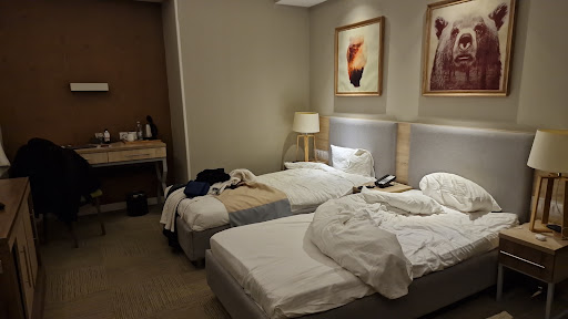 То место, где цена намного не соответствует качеству!!! Сам тут первый раз и никому не посоветую из коллег сюда.. номера тесные, туалет ледяной, в душе вода не стекает, просто в воде неизвестного наполнения стоишь купаешься, поэтому из трёх дней проживания не получилось у себя в номере принять душ!!!!! Обращался на ресепшн, записали что необходимо прочистить сливную трубу и на следующий день никакого результата, потом другой администраторше сказал, опять записали и вновь никакого результата!!!! На третий день, встретил вновь ту администраторшу, которой жаловался на слив, она сказала что сантехник уже приходил и прочистил и сказал все нормально....а по факту ничего не изменилось, тк если бы он прочистил, то вода бы сливалась, а тут даже не включал и не проверял (скорее всего и не приходил)!!! Завтра буду съезжать, они обещали завтра прочистить, может кому-то повезёт...когда-нибудь...)))) а на просьбу заменить номер на другой, сказали, что свободных номеров нет, хотя на данный момент, кроме меня и моих коллег (4 номера) никого не встречал!!!! Людей жителей вообще нет! Отдельное спасибо ресторану! Все официанты знающие английский язык, не стыдно было перед гостями и очень вежливые!!!! Повар тоже умница..отдельное им спасибо.. а также завтрак, очень понравился..и каши вкусные и самса домашняя, отдельный респект за неё.. жаль что больше сюда не приеду из-за такого осадка с канализацией и принятием решений...за три дня -...