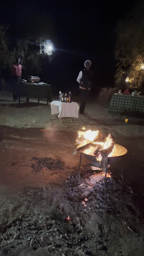 A driver in a 4x4 waited for us as he took us off-site to a location where our 7:30pm bush dinner was all set up for just the two of us. We were so amazed driving up as we had a small staff to ourselves, a mini bonfire, a mini bar full of drinks, a mini buffet, a beautiful table setting, candles lighting the path, and lanterns that lit up in the tree. THIS was how I thought a bush dinner was going to be and they passed it with flying colors. It was the best setup we've ever had! The first time my husband and I tried to have a private romantic dinner like this was on our vacation to Bali in 2015. They were supposed to do a candlelit setup for us but the reservation did not get confirmed and we missed it. So we tried a couple more times on different vacations and they always seemed to fall short of our expectations. Our dinner with Little Amanya Camp was the first time it worked out the way we wanted and it was our best experience yet! Everything was perfect.