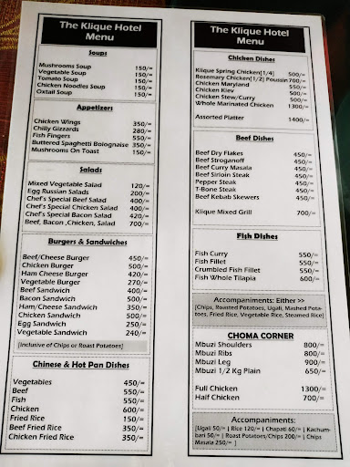 Read moreI went to The Klique restaurant to have lunch and I was greatly disappointed.||First off, it took forever for a waiter to serve us and the food wasn't anything to write home about. ||Now comes the part that pissed me off, when I asked for a WiFi password, I was told that I had to pay Ksh.100 for a 3 hour usage which is ridiculous for a hotel that boasts to be Eldoret's finest. The network gave me a 10 minute free test usage; what in the hell I'm I supposed to do with 10 minutes of internet? ||There are stickers at the door that indicate the acceptance of cards as a form of payment; however, when I went to pay with my Visa card, I was informed that it does not work. Then my waitress came back to tell me that they can accept it but they'll charge a processing fee that is 10% of my bill. Needless to say, I had to leave my sister and friend in the hotel so I could go to an ATM and withdraw some cash.||||Worst lunch experience in Eldoret, I could have had it better...