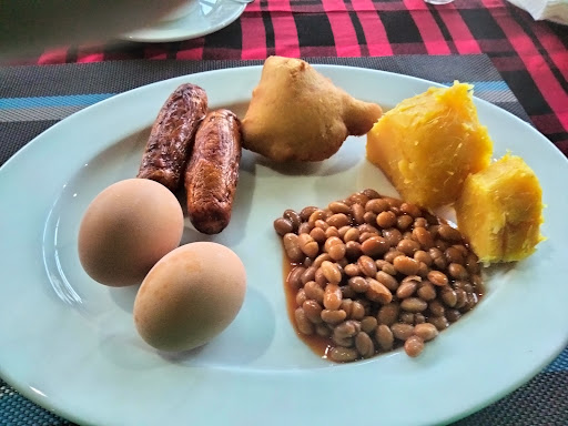 The food we found to be literal camp food and not great. It was bland, the chicken was very overcooked and dry. Breakfast is served without fruit and is mostly breads and bread products. There were hard boiled eggs and sausages served as well. Most food was buffet style and left overs are common. Dinner is served after 7:30 pm at the earliest. For us, after a long day on a Safari, we hoped to be able to eat early our safaris started at 6:30 in the morning and found the evening meal to be to late too eat and to be able to sleep early. We had boxed lunches prepared- they consisted of a stale uncut bun with no butter, a bag of chips, a bruised old banana, a left over piece of chicken that had been cooked and left out already at the buffet from the night before and a juice box. This was very disappointing.