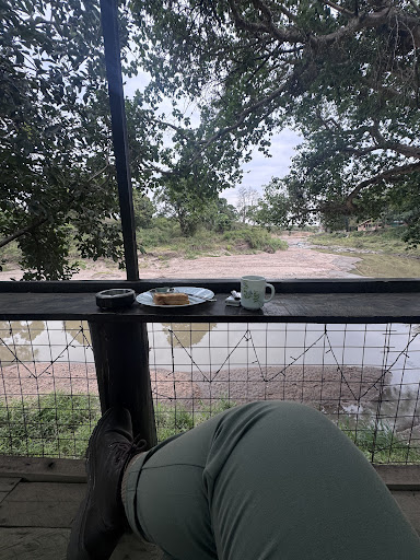 The service however does not match the location, especially when compared to other safari hotels we stayed at. I'd class the food as "edible", with breakfast and lunch being especially poor. If we could have eaten elsewhere, we would have, especially given that the restaurant feels like a canteen. The service is also quite confusing, with drinks being hard to come by and meals seeming to be served when it suited the staff despite the hours given. On one occasion we were made to move from where we were relaxing in the coffee area to the restaurant to eat lunch when the staff wanted, having already asked to wait and being only 15 minutes into the 2 hour lunch. The pool, whilst large and with an attendant, is very murky and full of bugs, not a pleasant experience at all. The guards were the best staff, all friendly and knowledgeable.