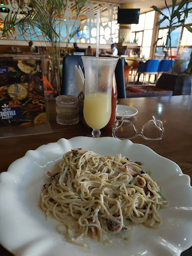 The restaurant has very limited choices and is a bit overpriced but still better than nothing. If you don't mind walking 10-15 mins or taking a car to the nearby Gataway mall, they have a food court and a restaurant called Mavericks with broader options and better prices. The area is safe to walk (during the day at least) and you can take a moto taxi on the way back (max 100 Ksh).