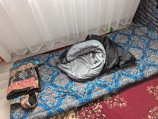 Now, since the mashrutka to Bishkek isn't running after the tour returns to the guest house Apple Hostel contracts with, you can either hitch hike or pay an exorbitant taxi again. The guest house owner quoted us a disgusting 4,000 som to Kochkor. Well, I asked about a cheap place to stay and she said I could stay there for 1,000 som and get the mashrutka to Bishkek in the morning. I was in no position to argue because I was tired and had too much baggage to hitch hike, but this is more expensive than a hostel, and I agreed expecting somewhere decent. Nope. I slept in the luggage room on a pad, and the woman's alarm went off every five minutes from maybe 3:00 AM. Worst night ever, while my friends who hitchhiked got out.