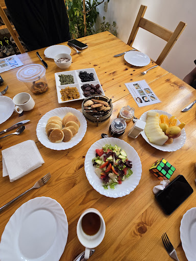 The most wonderful stay in Karakol where we were so well taken care of. Rooms are beautiful and comfortable, with all the amenities you could need during the stay. Breakfast is provided at a time of your choosing as well, ensuring that the hot portion of your meal is kept hot. Coffee, teas, hot water are available 24/7 as well. Luggage can also be left in their store during your treks and retrieved when you get back.