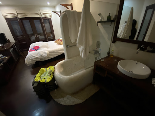 We booked a suite. Apparently they have 2 suites one of which is actually a suite and is called a king room. What they gave us was a queen room which they call a suite also but is not nearly as good. Broken shower with no curtain, no safe(although they gave us one later), small balcony, no river view etc. very different from the photos and description they gave us||Further they quoted us 50k kip for a Tuk-tuk but later charged us 70k ki because our flight was an hour late and landed at 9. I had called before hand about the delay and we agreed to 9 pm pick-up at the same price. The receptionist later said that it was 80k Kip because of the night pickup but we were not informed about it earlier. So we agreed on 70k. It’s not about $2 but the principle of it. We got our own tuk-tuk for 40k on return during daytime. Can’t imagine night to be more than 60k for which you may actually be able to get a proper taxi. The manage of the hotel without asking us booked a cab for us for ride back which we refused. Not sure what he would have charged us. Felt a bit ripped off. |||Filed a dispute with Agoda and 10 days later Agoda is still waiting to hear back from them. Only good thing is the location. Imagine a bathroom in your bedroom with no shower curtain making it all wet.||You are better if staying...