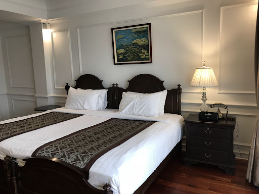 Read moreAfter 3 weeks of budget hotels we spent 2 well deserved nights at the Dhavara Hotel. It was exactly what the doctor ordered (seriously I was very sick & just came from the doctors). The staff at check in were fabulous a little bit of a language barrier but we all got by. ||||The buildings architecture is a stunning French Colonial. It has an old French colonial feeling to the furniture and decor through out the whole hotel. There is even a cute boutique store off the lobby. I just loved it here! It did cost us about $100CAD a night (this was Dec 28th-29th). So this might have been holiday season pricing. There was also cheaper rooms. So it is a bit pricey but still much cheaper than getting a hotel like this back home. ||||We had a premier room. It was huge!!! Big comfy king size bed with amazing bedding and 4 pillows. There was so much room I didn’t no what to do with all the space. The bathroom had a huge bathtub, shower and did not have to fight to get hot water. Tv had English movies. Then seem to have everything; Shampoo, conditioner, body wash, blow dryer in each room, in-room safes, robes, well stocked mini fridge & snacks and so much more. Did I mention the old style feel but with all new stuff. There was no issues with the free wi-fi it worked awesome everywhere. ||||Everyone at the hotel was amazing. So helpful and friendly. English was differently not even their second language. Google translator helped huge. Especially after they ask us to change it from Khmer to Thai. ||||The hotel is showing a little wear in some of the paint but that’s seriously the only concern and problem with this place. ||||The Restaurant was really good as well. We ate 2 dinner and 1 breakfast here. They took my food allergy very serious. Even the Chef would come out to follow up with the allergy. Dinner the first night was very quiet. They had a large menu (please see pictures). Prices ranged from 24,000KIP ($3.60CAD)- 180,000KIP ($27CAD). Which the 180,000KIP was for a fancy steak dinner. The menu is a big local, Thai and western. Dessert was excellent as well. Their home-made ice cream was incredible.||Dinner the second night was very busy that we asked to site on the patio. It was the perfect night to sit out there and best of all no bugs! Breakfast was very good. I only ate to crepes nothing fancy but they were delicious. Im not really a...
