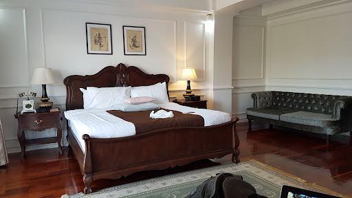 Read moreThis hotel is well located for restaurants and bars .There are some local tourist sites within walking distance and plenty of tuk-tuk to take to you to others. If you plan to go to Buddha Park I would suggest you take a car as it is a 30/40 minute ride but well worth going.||The hotel reception is gracefully presented and the staff are pleasant and helpful. There is no swimming pool at this hotel.|The dining room for breakfast is again tastefully presented. The breakfast menu is limited but nevertheless more than adequate. The cappuccino is particularly good.||The bedroom is large and had some charm with a large balcony which has a tile floor and could do with up dating. The bedroom does have all the requirements and the bed is comfy, however, again it does need updating. The bathroom is large with an in-bath shower which to be honest is not the best, the shower itself needs replacing - it does work but temperature is difficult to control. Climbing in and out of the bath which has no non slip mat is potentially a hazard and it is evident that others had held onto the towel rail for support, which was coming away from the wall.||Superficially the hotel is clean but the standard of cleaning did not do the hotel proud . There is a nicely furnished lounge on the first floor. There are also large hallways which are sparsely furnished and to furnish those areas would enhance the general feel...