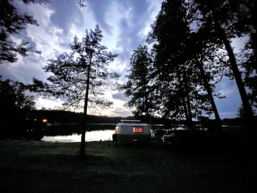 Read moreWe didn’t have a reservation, so we were happy to be given a nice spot by the woods for our tiny caravan. This isn’t your typical campsite — there’s very limited space for overnight stays in tents or RVs. We were lucky they could accommodate us. The site is primarily designed for day visitors, who can stay until 23:00. By nighttime, we were the only ones left, apart from a few families staying in the on-site cottages. During the day, especially on weekends, the contrast is striking — the place gets quite lively with lots of people, music, conversations, and laughter. But at night, it turns completely silent — which we loved. We were welcomed by one of the family members who owns the place. While his approach could benefit from a bit of hospitality training, his sister was wonderfully warm and welcoming, making up for it. The bar and restaurant on-site are quite good, and the forest nearby is perfect for hiking or cycling. All in all, we really enjoyed our stay. It's a great base for visiting both Riga...