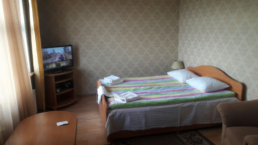 Read moreМесто нам очень понравилось. Расположено в двух минутах от пешеходной части улицы Jomas. Кафе и клубы в нескольких минутах.||И до моря не далеко. ||Мы приехали на день раньше, чем бронировали, но нам повезло и наш номер освободился на день раньше.||В одной минуте от отеля река. Есть люди, которые специально селятся в отеле, чтобы можно было целый день сидеть ловить рыбу.||У хозяек в отдельном домике живут две маленьких и очень дружелюбных собачки и гигантский кот. Кот весит 13 килограмм, после того как похудел.||Хозяйки очень отзывчивые.||Если сразу понимать, что это гостевой дом, а не 5 звездочный отель, то впечатления будут отличные!||Минус: совсем рядом проходит железная дорога, и когда по ней идет поезд, то очень хорошо его слышно. Но так как по этой ветке ходят только электрички Рига-Юрмала, то и поезда ходят не очень часто. Мы беспокоились, что они ночью будут мешать спать, но ночью ни разу не слышали. Возможно ночью...