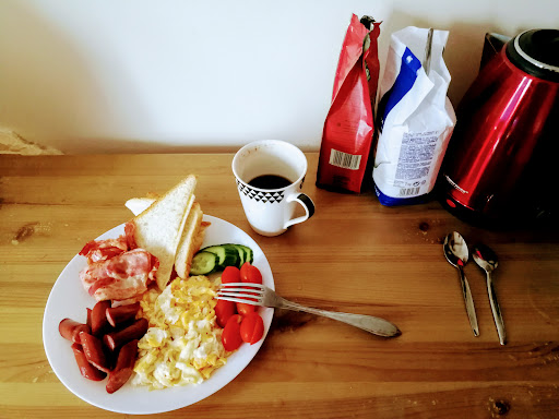 We three British middle-aged guys are on our last leg of a tour of LT and LV. We had heard about this interesting university town and booked the Hostel room ahead based on B.c reviews and prices. Jelgava is not a touristy town. We arrived from Rundãle at 12:43 after the bumpy 1.5hr bus journey.||||We could only check in at 15:00 (and had told the Hostel we would be there then) so found a left luggage place in the bus station (70cents for three items, which closed at 16:30) and found Silva terrace nearby in the main pedestrian street to have a beer in. We worked out there was no point going the 2.2km there and 2.2km back as we would miss any ticketed attractions so we explored the town, collected our bags at 16:15 and eventually had a late lunch in Silva. A pop into the Rimi supermarket and before we knew it it was 18:00! We then embarked on the long walk out 2.2km from bus station, taking the quieter backstreets using Maps.me route finder.||||We arrived at 18:20 and the dour receptionist woman did not look happy. My friends said that is usual customer service style in the Baltics although it was possibly because we did not arrive at 15:00 as we said we would.||||She showed us through the communal and kitchen areas and up the stairs to Room 5. Interesting colour coordinations! ||||The landing was quite dusty with clumps of dust scurrying round the floor in the breeze. ||||The room was large and bright with a twin/double bed and single bed all with clean sheets, pillows and duvet but the bed sheet was far too small, a weird common issue in the Baltics/Eastern Europe.||||There was a kettle in room, unused as no cups, but there were plenty of sockets for devices. The small bin did not have a plastic bag inner and that showed, it was quite grubby.||||There were no seats or chairs (although space for a table and chair or two) so one had to sit on the edge of the wooden beds. A bit uncomfortable.||||This room five had the large balcony overlooking the road. Great if the weather is good but a bit windy and cold when we arrived. Two loungers, a log stool and table were useful to relax on after the long walk. It was a bit noisy as on the main road but inside the double glazing was fairly effective.||||The kitchen had a fridge freezer, both sections quite full, as were the cupboards so the hostel was quite busy), a double portable electric hob, kettle and some glasses, crockery and cutlery. There was a very old dried out avocado in the corner on the surface and unwashed utensils by it. The next morning the avocado had gone thankfully. The bin under the sink was very full of mixed rubbish (no recycling evident) and an unrinsed milk container with very stale milk in it. It looks like no one had emptied it for ages. In the morning was a disposable nappy in the same unemptied bin; I suppose there was nowhere else for it. I separated out the basic bulky recyclables (plastic bottles) and put them to the side.||||In the corner of the kitchen was a shower-room for ground floor guests. In the kitchen itself was a brightly coloured table and chairs in kitchen for kids. ||||The common room looks very different from the TA image, obviously aged and rearranged, more just a space now with one sofa (very social!) but there is a covered and seemingly unused pool table and TV. The massive wardrobe is round the corner.||||The toilet paper in the upstairs loo had run out but I let the receptionist know and she gave me a new roll no problem.||||We only noticed two other male guests, both quiet and no one playing loud music as did a previous reviewer! I never found a jacuzzi (mentioned previously); maybe I did not hard enough.||||We walked back into the centre to find and eat dinner (at Istaba restaurant - not in TA - underlooking the new bridge) but took a €4 taxi (after the quiet Monday night meal)at 23:45. The driver overshot as had never heard of the place! The 8/10 B.c rating for locality was a bit optimistic.||||On returning from the dinner we tried out the big old CRT TV once the satellite box SCART was connected up and plugged into the mains! Only three channels were viewable as all the rest were pay channels. The only English channel was the 'interesting' Japanese NHK World; Enjoy!||||We had a peaceful night on the slightly lumpy beds. Getting up at 07:30 (09:00 bus to Takuma) and the morning the sun was out. I made coffee using the kitchen kettle and stealing a drop of milk from a large bottle in the fridge (sorry it was me!). ||||There was a small washing machine in first floor shower/loo & sink room. The shower was a multi squirt job which needed careful controlling according to my friends. I used the shower by the kitchen which had old hairs in the plughole that I swept out to the side with my toes. Not a pretty sight and I hope they are cleaned away. Plenty of hot water at a good pressure. There was no direct light above the sink mirror for shaving (steamed up anyway) and pressure was good enough for jetting my razor.||||Up at 07:30 we left at 08:27, saying goodbye to our hostess, to walk the 25 minute, 2.2km to the bus station to catch the 09:00 local bus. We were a bit miffed that the bus stopped right outside the Hostel at 09:05! We arrived at Tukums at 10.15 to catch the 10:45 to the seaside town of...