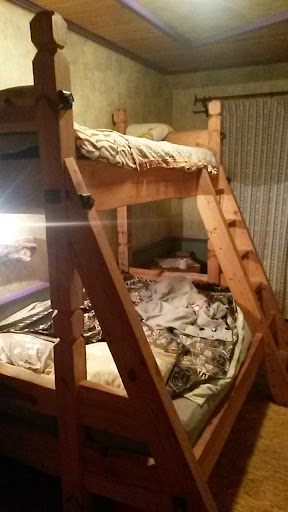 I booked a room here for seven days last Winter and I ended up staying for five weeks. Honestly, I loved this place. The owners, Ainis and Nora, live next door and are really great people. (They also operate a flower and gift shop there.) They were very good at making sure everything was OK and seeing if I needed anything. Basic English was acceptable for day to day things, and another person was available for any in-depth language needs.|||| You can see from the pictures that it's built and decorated very uniquely; actually hand-built by the owner from all natural wood and stone. There's a "full" kitchen, e.g., fridge/freezer, stove top, oven, pots and pans, etc., so you can cook a full meal--or just make sandwiches and snacks. Also, there's a grille (BBQ) in the courtyard.|||| Close by: a small food market/groceries (1 minute walk); a small cafe/bar with very good meals for 3 or 4 Euros (2 minute walk) ; the river and footpath (1 minute); train station (3 or 4 minutes); larger supermarket (10 minutes); pizza restaurant (12 minutes); Catholic, Lutheran and Baptist churches (2, 3 and 12 minutes); and a few things I'm forgetting.|||| The trains run several times a day in both directions and are very inexpensive. Some days I would take a ride to a larger city for only 1 or 2 Euros each way. I think that Riga (the capital) was about 4 Euros. So, obviously, a person is able to save quite a bit of money by basing yourself here and traveling around with the train or car.|||| If you push me for something negative, I'd suggest some more lights around the main door (inside and out) and maybe a hotel name which non-Latvian speakers could remember! ;-] Also, I'm not sure if the fireplace in the dining area is functional.|||| So, if you're looking for nightclubs, Broadway shows, 24 hour non-stop action, etc., well, this won't be for you, as the lodge is situated in a very large, quiet, village. But if you're not looking for Las Vegas, you've got a very peaceful and relaxing "log cabin lodge" with excellent wi-fi, comfortable beds, 3 bathrooms, hot water, a great vibe and at a great price. ...