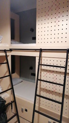 Read moreThis is a really weird hostel. There is some really nice things but this is all massively undermined by the layout. I think it's very new as everything is really new and shiny. All the locks are controlled by numerical keypads although it means you have to remember or write down all the codes. It was really cheap which is nice and the staff were friendly when around. All the beds had a curtain, light and sockets. The main issue is the layout. I was in a 12 bed dorm which has triple bunks although they were freshest, nicest triple bunks I have seen. The main issue is there is no room to move. The gap separating the beds is so small if anyone is standing up you literally cannot pass them. It can't be wider than 2 foot. There is also these lockers on the bottom and again if they are open you have to step over them; however they are so thin they are practically 2 dimensional so no need to open them. I don't get the point of them as you can't fit anything. If it was a double bunk, not triple, it could have enough room for bags and be great; this would be really handy as there is no rooms for bags. The room was full the night I stayed so all the bags were in a small seating area. This is a 6-8 bed dorm masquerading as a 12 bed dorm. This is true of the common areas on both floors. There is actually a tremendous selection of teas but very few seats or places to sit and enjoy. There is also lockers and you are probably thinking, if you are crazy enough to read this far down, problem solved for bag storage but no that would make too much sense; you pay for locker using €1 or €2 coin and can only close the door once and once you reopen it will cost another €1/2. I believe they are there for those who have checked out and need 1 off bag storage. Finally the day I arrived the lady running it didn't seem to be around that much. There was 3 or 4 times when people were waiting around for decent amount of time; of course there is no reception as not enough room.