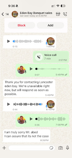 Please find a screenshot with the manager with last text stating "I can assure you that is not case" that was in response to my statement "did you raise the price because you knew I'm coming from abroad and I probably...