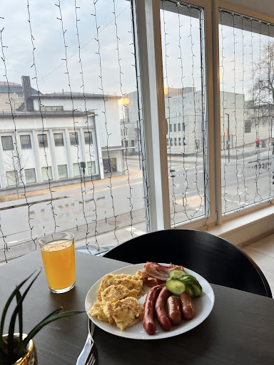 Read moreWhen we arrived at reception we were greeted very hospitably. As we were cycling we were given a safe place to keep our bikes overnight. The suite we booked had great Wifi reception (room #1 the suite, near reception) , a fridge and kettle. A separate bedroom and sitting area with sofa and table and chairs was nice. Even though the hotel is dated, the rooms are clean and comfortable.||The hotel is located right in the main square of Alytus. There are plenty of places to eat and a park nearby. We had a nice tourist brochure "Alytus on Foot" which prooved very helpful||A walk through a beautiful park nearby with fountain and rose garden was pleasant..||Sorry tagmanMiddlesborough but you get what you pay for, ask for a suite next time with Wifi before...