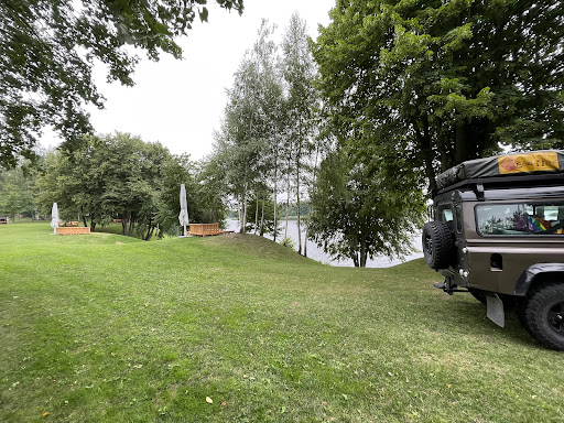 Stayed one night when we were going to Poland and one night on our way back to Estonia. The place was lovely – spacious, with a children's playground, showers, toilets, and a kitchen available. At the reception, there is a small shop, and you can buy fresh, warm bread for the morning. The place is located next to a lake, with a small hill leading down to it, a sandy patch, and the possibility to swim.