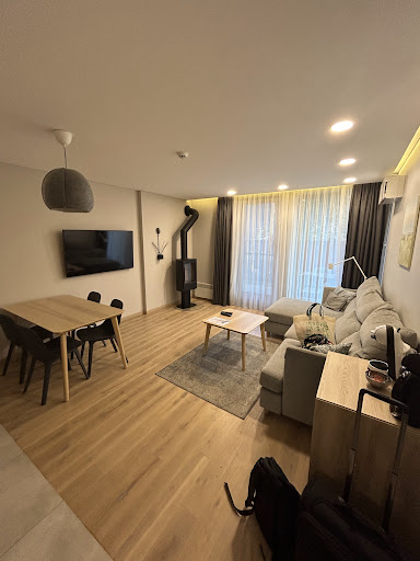 Fantastic place, obviously it's really well placed for both beautiful forest walks and a very short walk to a stunning beach where you can watch the sunset. But the house itself was really impressive. Very well insulated, it seemed to be almost completely soundproof, we knew we had neighbours but we didn't hear them once. The apartment is nicely decorated and absolutely spotless. The kitchen is incredibly well equipped, the oven goes down to temperatures low enough to dehydrate mushrooms without cooking them. The knives are sharp (often they're blunt in holiday homes), there's a blender and food processor, electric whisk etc. So rather than just the basic chopping board and pans you can actually cook anything you might make at home. I was very impressed with the amenities. The bed is really comfortable, lovely big sofa, fantastic fireplace, great water pressure. Really everything you could want. We will definitely be visiting again and next time we hope to bring family and rent the larger apartment. The hosts were very friendly and thankfully for us they spoke English, which they don't need to do but our language skills are dreadful so we were grateful. Really worth a visit, absolutely perfect place to stay for a...