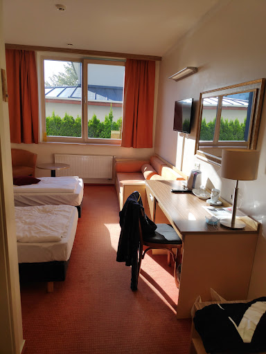 Read moreFunny thing, going up to your room and passing by an office area with glass walls, people working.||The hotel is situated a bit outside the centre, but it's only a 5-10' walk.||+ Great, friendly staff, breakfast, big rooms, no sounds from the street disturbing. Free parking. Good bathroom.||- Awakened by other hotel guests arriving at midnight to the room next door to us. Sound proofing towards other rooms and the hallway is not the best. Pillows really thick and firm, will break your neck lying on your back. Good for watching the...