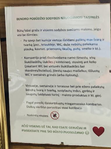 Blogai, siulau rinktis bet kuria kita sodyba. Trukumai, apie kuriuos verta pagalvoti: kambariai irengti labai specifiniam skoniui, namelyje vienas wc kartu su dusu, tad 10+ zmoniu kompanijai mazu maziausiai nepatogu, atvykus ir sumokejus palyginus didele kaina is sveciu tikimasi, kad jie plaus grindis ir pan. Virtuveje nera indaploves, ji nepatogi ruosiant maista didesniam kiekiui zmoniu; nera labai svaru, stalciuose radome neplautu stalo irankiu. Grilio groteles labai mazos, iki musu nebuvo plautos nenusakoma laiko tarpa. Namo kampuose po balonais sukabinti tinklai nuo pauksciu, juose kabo negyvu pauksciu kuneliai. Seiminike labai landi, nori bendrauti, bet tai greitai tampa ikiru, privatumo mazai, nuolat ateina pasneketi, bendraujama neprofesionaliai, kaip su giminem ar mazais vaikais, paskutine diena dar ruosiantis isvykti jau buvo lendama i miegamuosius patikrinti, ar nieko nesugadinome, nors pati seimininke gyre kokia rami musu kompanija. Jautemes kaip pas per daug draugiska giminaite, taciau naudojomes paslauga, uz kuria nemazai sumokejome. Ciuziniai nepatogus, miegamieji be oro kondicinieriu. Keicia is anksto sutartas kainas, is oro prirase papildomu paslaugu ir zmoniu (nors susirinko maziau zmoniu nei buvo rezervuota kazkaip 11 zmoniu tapo 13), tenko moket uz tai, ko nesitareme pvz elektra, grilus, nors tai buvo iskaiciuota i pradine kaina. Pliusai: graziai sutvarkyta aplinka (neskaitant negyvu pauksciu:)), patogus nusileidimas prie vandens. Jei visgi noresite rizikuoti - sidarinekite sutarti per booking ir nesirasykite jokiu jos...