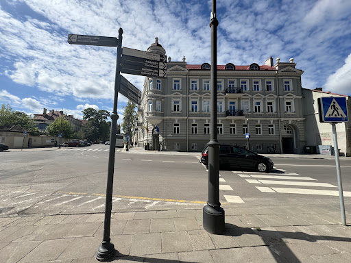 Read moreIt appears that this hotel has been recently converted (from what I did not find out). The exterior was a large, imposing old building and it was very clean, bright and un-scuffed inside. Its major selling point was its brilliant location – next door to the park, large square, palace and restaurants, street market and shops. It was a manageable walk from the Old Town. Despite this, and its proximity to restaurants, it was very quiet (but then so was the whole of Vilnius). My room was a good size, bright, clean and decorated in simple, minimalist style. The bathroom was likewise new, clean and functional, with in my case a good walk-in shower. The reception area was small, but the staff helpful and they coped well with an influx of several large groups. The bar was not part of the hotel, but apparently operated by a franchise and was someyhing of a law unto itself. The group of which I was part were all under the impression that there was a restaurant where we could eat the first night, having been travelling all day, with a flight change in Brussels. However, as part of a Voyages Jules Verne tour, we were blessed with a helpful guide, and were directed to a restaurant a mere few hundred yards away where we were able to have an excellent meal at very reasonable prices.|If this hotel had a flaw, it was breakfast. Very (read over!) crowded on our first morning and cursed by the dreaded coffee machines, which slow everything up so. There was not a huge variety, although you’d be pressed not to find something to eat. My main beef was that all the supposedly hot items were tepid to cold, and less than appetizing as a result. |There was no information sheet in the room, and working the TV, finding out bar hours etc was a bit hit and miss. I failed to find the necessary on/off switch on the hairdryer until informed it had one by Reception! The wi-fi code was in tiny writing inside the card with the room number on. So, with a little bit more available info and beef up (and warm up) the breakfast and this would be a really excellent place to stay to...
