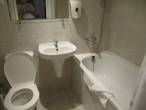 This hotel was our second hotel and completely different to the first (see Vienna House, Warsaw review)|The hotel is in a largely residential area that consists of Soviet Era communist apartment buildings, the area is not well maintained and does not look like the best part of the city!|The hotel is also a relic of the Soviet era! Although inside clear attempts have been made at modernisation!|Our room was 302 and we were facing the car park and one of the residential buildings I mentioned earlier!|The room was a good size but as soon as we walked in we were struck by a strange, but not unpleasant smell, a bit like cheap cake!|The room has no air conditioning at all only a small desk fan that did what it could but was inadequate for a room in 30°+ temperatures!|The beds were quite low and although comfortable enough had clearly seen better days!|The bathroom was nice enough but a heated towel rail in there was on all the time which only served to make it hot in there too, we nicknamed the hotel The Soviet Sweatbox!|The restaurant is at the back of the hotel and quite a walk from reception, it can be accessed from floors two and three as it is on 3 levels, there is also a nice, outdoor seating area! On our first night our group was given the choice of sitting inside or out but the second night they had what looked like a wedding function in the dining room so everyone was outside if they liked it or not!|The first nights meal service was a bit of a shambles, some tables were laid, some were not. Some tables had water and others did not! The staff did their best to sort the issues but it was almost like we had taken them by surprise and they were not expecting us!|First night we had a feta cheese salad to start followed by chicken schnitzel with rice with a strawberry mousse to finish. The second night we had a plain dressed salad to start followed by beef stroganoff with mashed potato and apple cake for dessert! The food was pleasant enough and the portions were not bad!|Breakfast was a bit of a shambles too, there is not a great deal to choose from and some of the things on offer were a bit odd! For example there were crepes but they were quite bland and a bit greasy, spongey hot dog segments, plain boiled pasta and an egg omelette type thing, some bread, a vast selection of cold meats and cheese, cereals and fruit! None of the fruit juices were chilled and the staff were slow to clear tables or replenish the buffet! The second morning the pasta had been replaced with potatoes which were quite nice, it seemed a bit more organised too!|On the whole this is not a bad hotel and they are clearly doing their best, but some changes need to be made! Due to climate change the area gets hotter for longer so air con is badly needed in the rooms, turning off (or the ability to turn off yourself) the heated towel rail in the bathroom would be good and a fridge in the room during the hotter months would be a benefit as there is a lidl across the street and a Maxima XX...