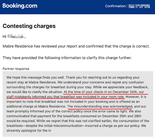 To make matters worse, the hotel admitted in writing that their staff misinformed us, yet they still refused to issue a refund. It raises serious concerns about dishonest, if not outright fraud.