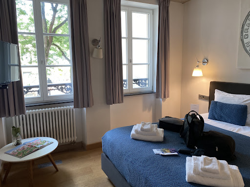 Read moreOur family stayed in the third and fourth floor rooms. The fourth floor is very aesthetically attractive with the sloped ceilings and leafy views. The room is spacious with what Americans would refer to as a king size bed. Note that the bathroom is concealed from the main room around a corner but there is no door. There is a large tub (in the main room) but no shower. The third floor room was even more spacious with a pullout sofa with high quality mattress in roughly an American queen size, along with the main bed in the space, a king. The bathroom area is very nice with privacy glass and a shower. Both rooms are well ventilated, very quiet, and have nice views. Rooms have a small refrigerator and coffee/tea; hardwood and tile flooring and are exceptionally clean. The area surrounding the hotel is historical and has many quality resturant options. We did not reserve breakfast at the hotel but it looked delicious and we will certainly select it on our return. I recommend reserving the hotel’s parking option as we found parking difficult in the immediate area. Also note, if you are going to the top of the steep hill to get to other parts of town there is a free 24/7 elevator. The entire town is walkable from the hotel’s location, with many nice paths along the river. I would highly recommend la pipistrelle hotel if you are staying...