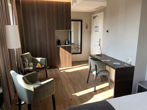 From the time I arrived I was greeted with a smile and high level of kindness.|I was shown how to get into the hotel after 20:00 in the evenings, taken to my room - which I must say is incredible.||The bathroom is larger than the average hotel bathrooms with a rain shower and standard shower, the basin is carved from wood which is awesome indeed. You get a coffee machine, bar fridge, safe, bottle of water and a huge TV. The bed is a double double it's huge and very comfortable.||I have stayed in several hotels in Luxembourg and this...