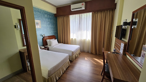 Read moreDecent enough place for honestly, a pretty rubbish town. I’m annoyed at them for not answering a query on the hotels.com app, through which I booked. They answered an earlier query on the app though, so inconsistency seems to be the theme. ||The hotel is at the edge of the small town centre, so it’s easily walkable. Big bonus in the room I stayed on the third floor… NO imam waking me thankfully, despite the hotel being next to the mosque. My room faced another block of flats rather than the street so maybe they had something to do with it?! Unfortunately you do hear the barking of dogs at night, as like everywhere in the country, the town has zero compassion for strays. 🤦🏽♀️||Room and bathroom were immaculately clean and there were heavy curtains. There is actually an English language channel on the old-school box television! No outlet next to the bed however, so inconvenient. And the wifi SUCKS, constantly turning on and off. So I just used my data plan. Better WiFi in that lobby and restaurant downstairs. Included breakfast wasn’t anything special: omelette or scrambled eggs with Malaysian 🇲🇾 savoury food (good mee- noodles- tho) but heavily meat-based unfortunately. Rubbish white bread offered on the buffet and only rice porridge. ||Great water shower pressure and steady hot water. 💧 Weird in that my room was cleaned but no towel replaced?! They offer some small toiletries which is not environmentally friendly. ||I really liked the bed and the pillows are but firm and thick which I loved. Also love two given per bed side. I do wish there was a top sheet though rather than just a duvet. The AC works too well then blasting on you, leaving you too cold but then it’s too warm when it’s turned off. A top sheet would solve this!||There is enough space in the room to include a mini-fridge. ||Reception is warm and friendly and speaks very...