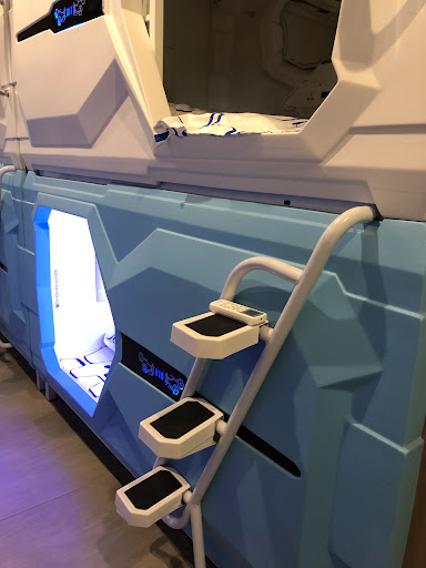 Read moreFantastic place to stay. The sleep pods are great, very roomy with seperate lighting, USB charging and plenty of space to store your Kindle, a bottle of water etc. The facilities are immaculate, several toilets and showers all of which were spotless and very roomy. The communal area is spacious and comfy with use of a TV and PS4. There is also a washing machine and dryer all of which comes at no additional cost. We stayed in one of the two private rooms which had just the two single bed sized pods aswell as a nice sized area for keeping our bags and stuff with us. A large window gave a nice view down to the shopping mall area below. Faultless for what you...