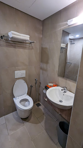 The rooms are the smallest I’ve ever seen, completely unlivable. Even the bathroom- which is of a reasonable size, is simply designed poorly, having no place to set a toiletry bag when a simple shelf would suffice. The wet towel bar hangs over the toilet. I was tripping over my 2 pieces of luggage, have no idea how two people, with accompanying luggage could possibly fit in one room- and all the rooms are this size. Yet the architect chose to have 4 meter wide hallways in places. This sort of aesthetics over substance is apparent throughout the hotel. Don’t expect much, and you won’t be disappointed. While the spacious lobby and staff uniforms give a impression this is a nice place to stay, you won't be fooled for long.