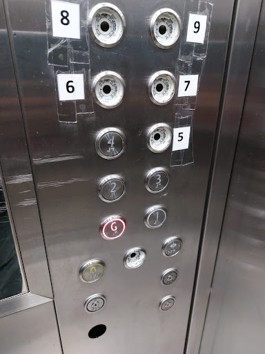 Safety- Hotel lift, missing buttons, creaky sound Wonder if it's serviced or not. You can tell guest's safety is not their concern.