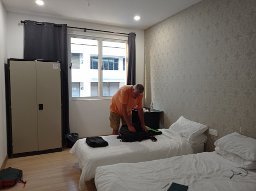 Booked through agoda. Suddenly next day received a message from a singaporean number requesting to upload ic. Property said from third party. Only needed to produce ic upon checking in. Guess what??? Self check in!!! Otherwise, room is comfortable and clean. Mineral water provided at kitchen . Would be nice if air cond is switched on below in the morning for more comfortable ironing. Semua kat bawah. Vending machine ada but not working. Water filter also not cool. But the place is quite near to eateries. Parking is a problem eventhough its free open air. Very narrow. Unfriendly neighbours staring at you. Woiiii you think i stay free aaaa???? Reason for staying here is waiting for son to arrive at the nearby bus terminal. If not, preferably...