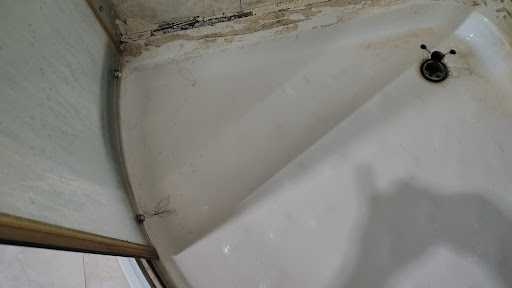 The real disgust came in the bathroom: hair and body hair everywhere (especially in the shower), strong sewage smell, broken cabinet, and a dangerously unstable mirror.