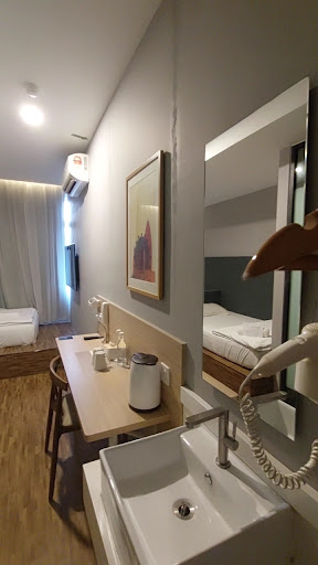 Read moreHako Tun Aminah’s location + overall aesthetic and comfort is great. It is located in the heart of a commercial square so you get plenty of food choices, super near access to Family Mart and 7-11 and there’s even a massage centre right beside it. The hotel’s industrial chic aesthetic is great as well and one of the biggest plus points for me was the comfortable bed and pillows (my room was Deluxe with King-sized bed). There is also a complimentary 24-hour pantry access with hot coffee/tea with biscuits at the lobby. ||There are only three other things that marred an otherwise 5/5 experience. During check-in, the front desk person wasn’t friendly and approachable, she gave off a condescending impression and was more mother matron of a girl’s boarding school abroad than a friendly hotel reception. This is however an individual-specific observation as the next morning during check-out, it was a different staff and she was smiley, friendly and welcoming. The second thing is because the location is within a commercial area, it becomes noisy with vehicles passing by throughout the day and with some eateries operating late into the night, loud music and crowd activities can be heard past midnight. Walls are thin so hotel guests and cleaners can be heard loudly throughout the day as well. And the last thing, for a hotel so pleasing in its aesthetic, it is a shame that the room’s bathroom is not maintained with dark stains and mold marks on the floor. The hotel should give the same attention and commitment it gives to maintain a pleasant aesthetic on the surface to its bathroom...