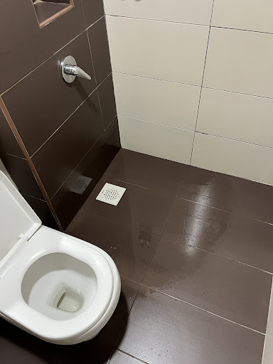 In the Studio Suite, we noticed medium-length hair on the pillow and bedsheets, suggesting that the linens may not have been changed prior to our arrival. The bathroom basin was leaking significantly due to a broken U-trap beneath the sink. Basic items like toilet paper were not provided at check-in, and the TV remote had visible dried residue on it. The jacuzzi was also not clean enough for use.