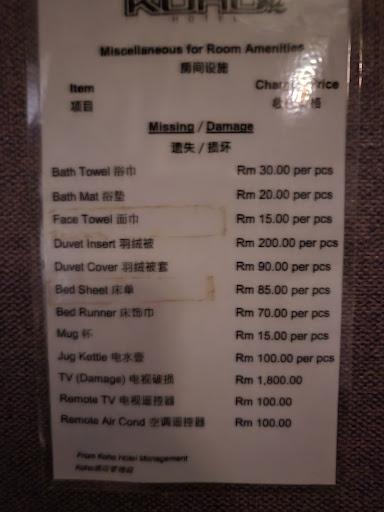 During the stay, I’ve tried to ask for a change in room as there is no window as I’m Claustrophobic but there will be a charge of additional 42 ringgit if you want to change room.