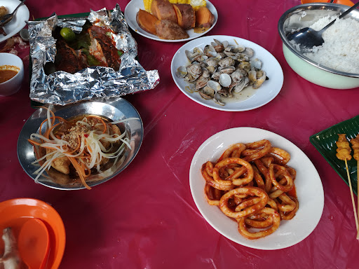 For dinner, we were expecting a BBQ, but turned out to be a hot and cramped affair in a corner. Despite requesting the lady boss to open the air cooler, her assurance went unfulfilled. We ended up switching it on ourselves, only to find out that it was malfunctioning. The dishes that arrived were underwhelming, featuring vegetables, fish balls, microwaved satay, wu xiang, a small plate of steamed small prawns, lala, squid and stingray. The uninspiring presentation left me with no appetite.