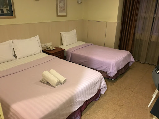 Our room had a single bed and a queen bed. I booked for a room with 2 single beds but they gave us an upgrade. An iron with ironing board was provided at the lift lobby of each floor.