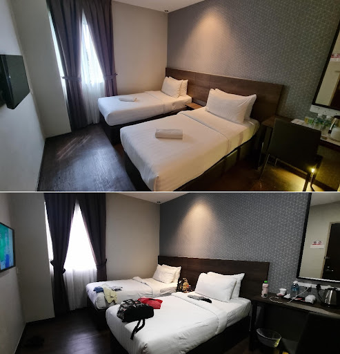 Cons noises heard easily, not soundproof. footsteps, chattering of other guests and sound of closing/opening of doors can be heard quite clearly and quite loud musky smell in room upon arrival (gets a little better after turning on air con and ventilator) toilet floor can be very slippery just with abit of water toilet flush not very sensitive (had to press and really hold for about 3 seconds so it will flush proper no mini fridge most rooms doesnt come with windows, so no proper ventilation, had to rely on air con