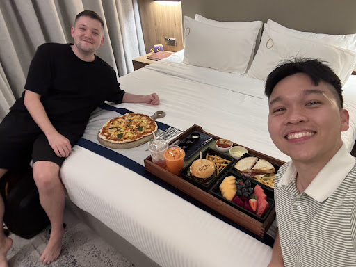 Service by Arnel was impeccable! He noticed our preference of non-dairy latte for breakfast (soy milk) and came up to us to confirm our room number so he could make sure we get the same coffee arrangement the next day as he wasnât around. Also had a lovely conversation with him! Izzat served us the next day and that was lovely too. The coffee was delivered without us asking for it (though it did take a while, I thought they forgot but they were probably just preparing it!) Manager who was in blue jacket and name starts with an M was very charismatic and energetic which was nice breath of fresh air. :)