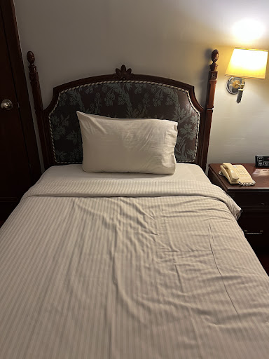 But: walked into the new room. Oh this one smelt worse. Grandmas beds retained her childhood sagging mattress. Both beds sagging. Sheets on one bed had an old stain on it. We questioned if we should dare sleep under the covers - who knows what’s what bugs are in there. The curtains torn. Paint on the carpet (guess they’ve recently updated), a lamp on the wall falling off, and mould on the lamp shade.