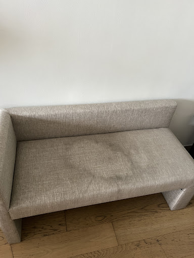 The room, which I had hoped would be a sanctuary, was in a deplorable state. Stains of unknown origin marred the bed and sofas, standing as silent testaments to the neglect this room had suffered. The floors, which clearly hadn't seen a vacuum in ages, were littered with debris and dirt.
