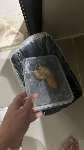 What really happened was, around 8 PM, I ate some durian in the bathroom, sealed the leftovers in a plastic container, and threw it in the trash. Later that night, someone from the hotel entered my room without telling me, took photos of the trash as "evidence", and left.